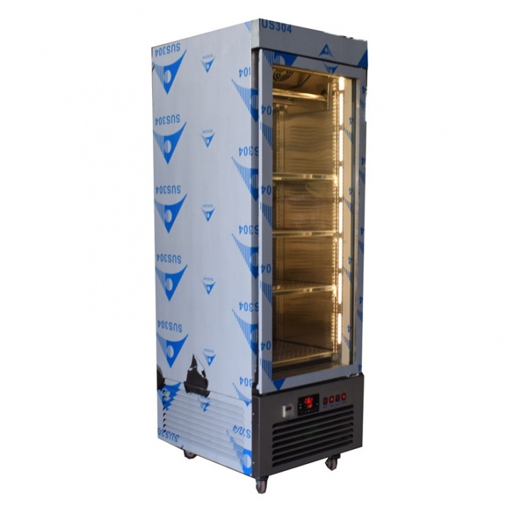 A única porta de aço inoxidável 304, bife de envelhecimento armário sob a unidade é adequado para clientes com pequena demanda, e a porta de vidro pode ver melhor a carne processo de mudança.